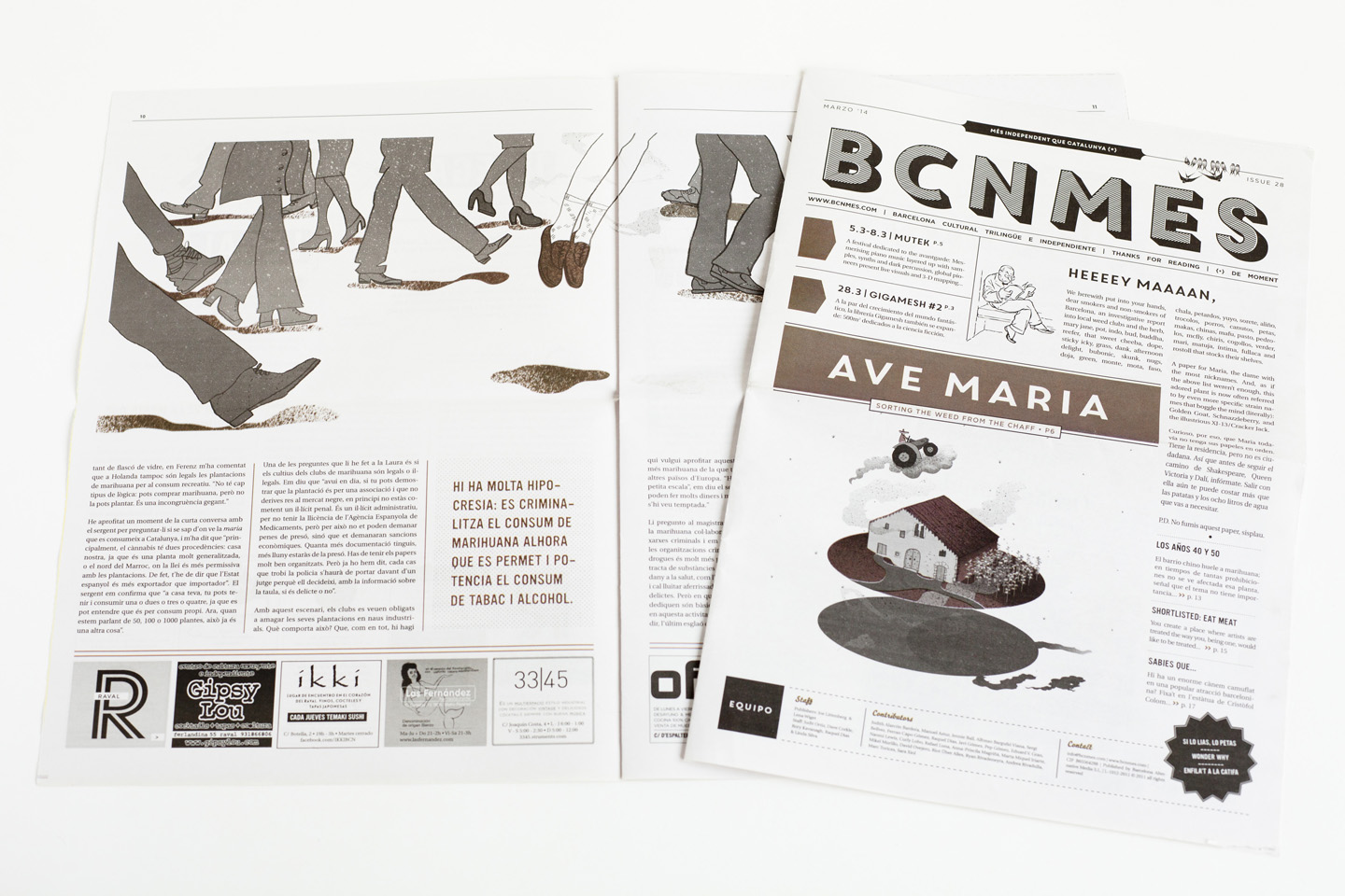 BBCN MES cover and central spread illustrations: "AVE MARIA: sorting the weed from the chaff"(2015).